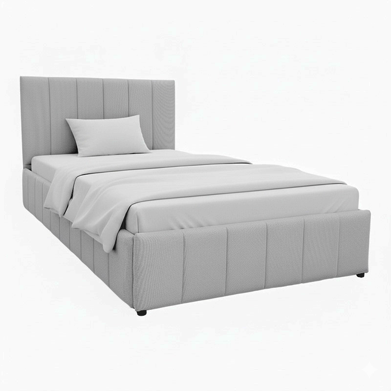 The elegant and highly functional Snuggle bed is an ideal addition to any bedroom, combining comfort with practical storage. Its sturdy construction, upholstered with high-quality fabric, provides a modern and refined aesthetic, while the vertical stitching on the headboard and around the bed base adds a discreet yet impressive detail.