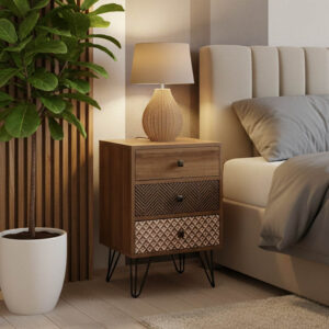 Is elegance, quality and impressive design your style? And are you tired of the same things? If so, then the Boho bedside table is for you. With a modern design, durable materials and three drawers for storing your favorite accessories. An ideal decoration proposal for the aesthetic renewal of your space.