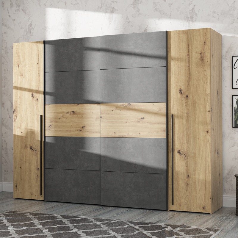 Verzo Argos The Classic four-leaf wardrobe oak-black melamine 270.5×61.5×210.5cm