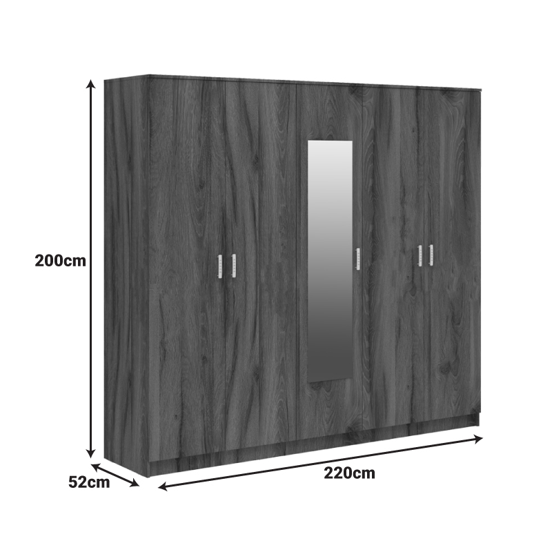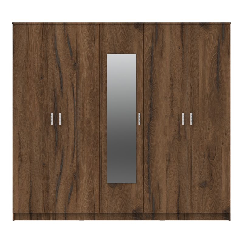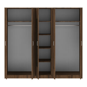 Luna Argos The Classic five-leaf wardrobe with mirror in walnut-oak 220x52x200cm