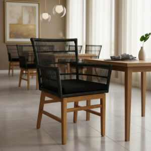 Inca armchair Argos The Classic teak wood and synthetic rope in natural-black shade with cushion 60x61x90cm