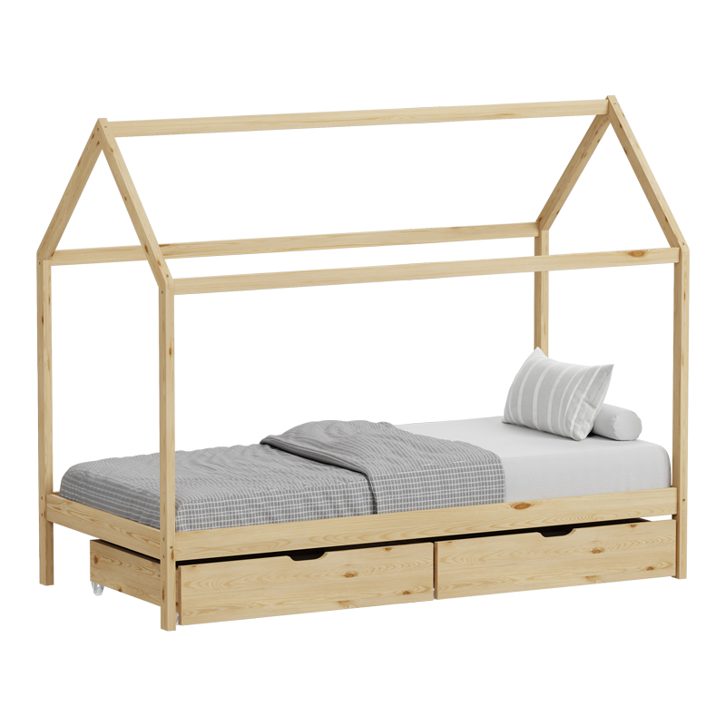 The Mellin Montessori children’s bed features a modern and imaginative design, inspired by the shape of a house. Its soft lines create a sense of tranquility, making it ideal for any child’s room. The bed’s roof adds a playful element, transforming it into a cozy retreat for children. The added drawers provide extra storage space for toys, books, or other items.