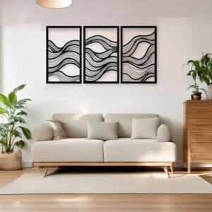 Bring the essence of the sea and the dynamic movement of waves to your wall with the Ocena set. This triptych plays with curves and parallel lines, creating a sense of continuous flow that soothes the eye and elevates the aesthetic of any space.