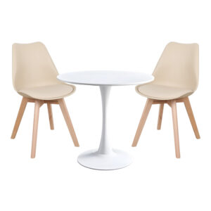 Elijah-Gaston Argos The Classic dining table set of 3 pp-pu in taupe-white color with natural legs Φ60x74cm