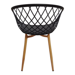 For those looking for a distinctive set to refresh their dining area, the Ezra-Cuba is for you. Crafted from high-quality materials, it perfectly combines comfort with design and quality with functionality. The armchair’s shape and black color add a sophisticated air, while the wood-like finish creates a warm contrast.