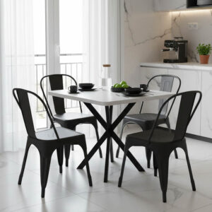 Prestone Argos The Classic melamine table in white shade and black metal leg 70x70x75cm