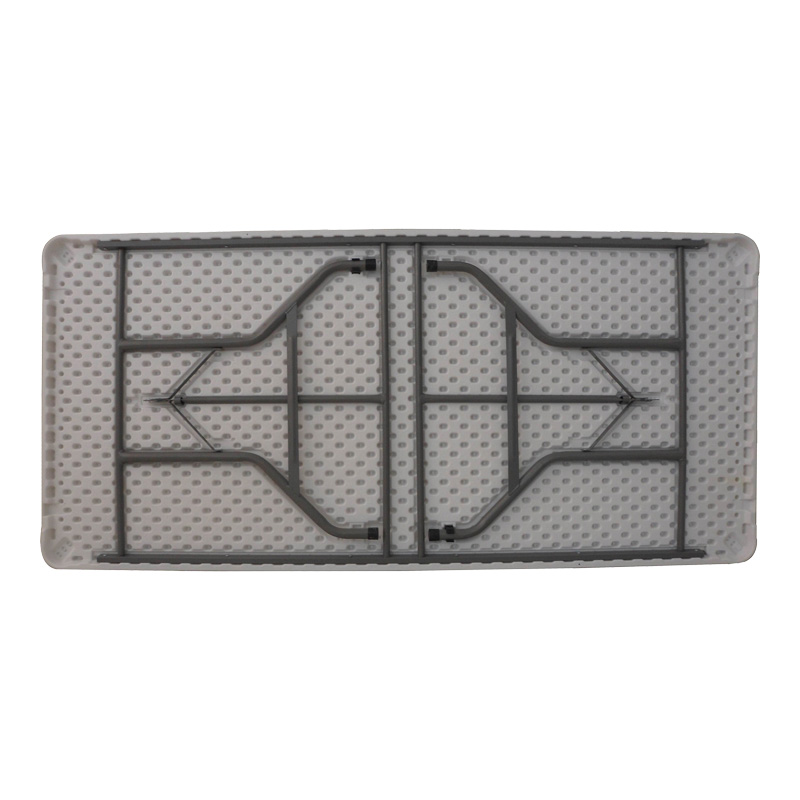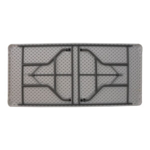 • Support on a reinforced metal frame Φ28 – 1mm of electrostatic paint that ends in a folding system of legs, in gray color. It has great impact resistance and excellent stability. When not in use the legs “collect” under the surface, saving space for easy storage and transport.