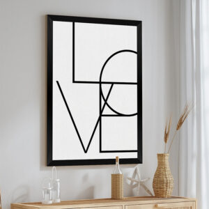 The Amora artwork is the ultimate minimal statement piece. Featuring the clean, geometric design of the word LOVE on a black-and-white background, it conveys a powerful and timeless message with a modern aesthetic. It is the perfect gift for loved ones or to add a romantic yet sophisticated touch to your personal space.