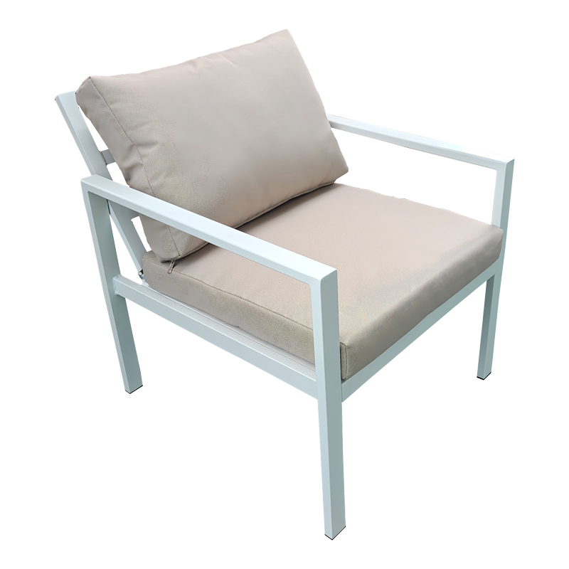 | Material | Color: WHITE FRAME – SAND CUSHIONS |