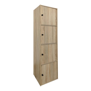 Enhance your storage capabilities with the Gabino tall cabinet, a smart solution for organizing especially limited spaces. Featuring four separate cabinets with discreet round handles, it provides ample closed storage space for various items. Its wooden construction adds a warm and subtle aesthetic, making it ideal for bathrooms, hallways, or any area that requires vertical organization. The sturdy build ensures stability and long-lasting durability.