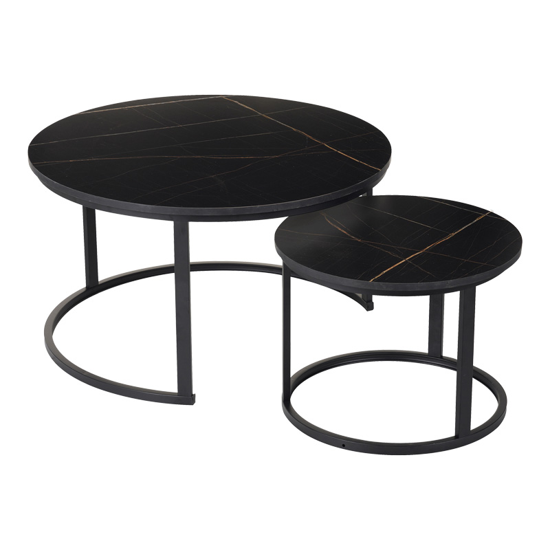 Coffee tables Solme I Argos The Classic 2pcs in black marble color with black metal legs