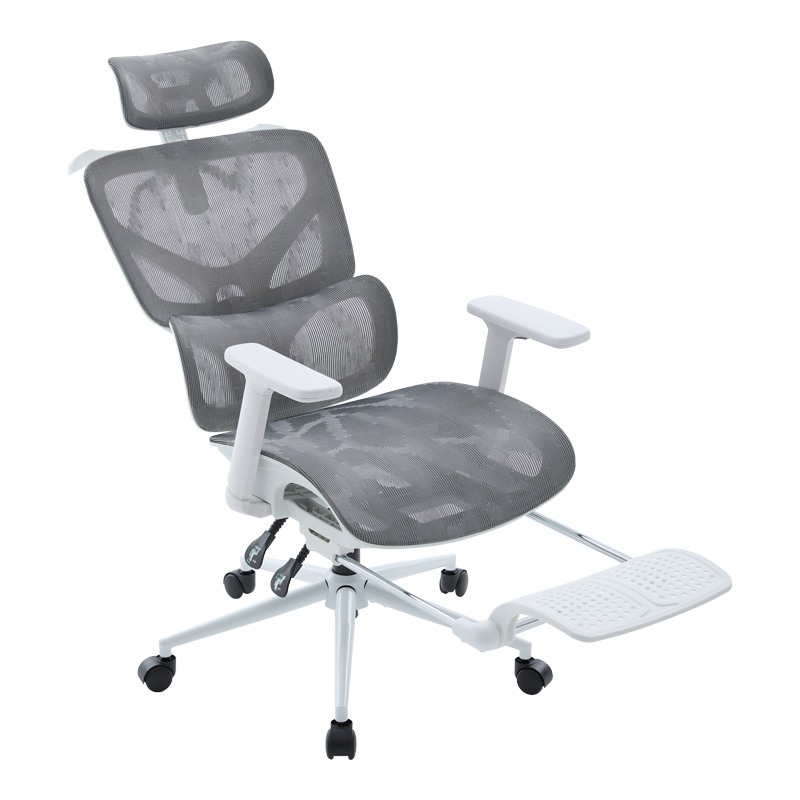 • Materials & Construction: The seat surface is made of reinforced thickening mesh fabric in grey, ensuring excellent breathability and durability. The frame is white and made of PP (Polypropylene), while the sturdy 350 mm base is a metal KD (Knock-Down) type, providing stability. The wheels are designed for smooth and silent rolling.