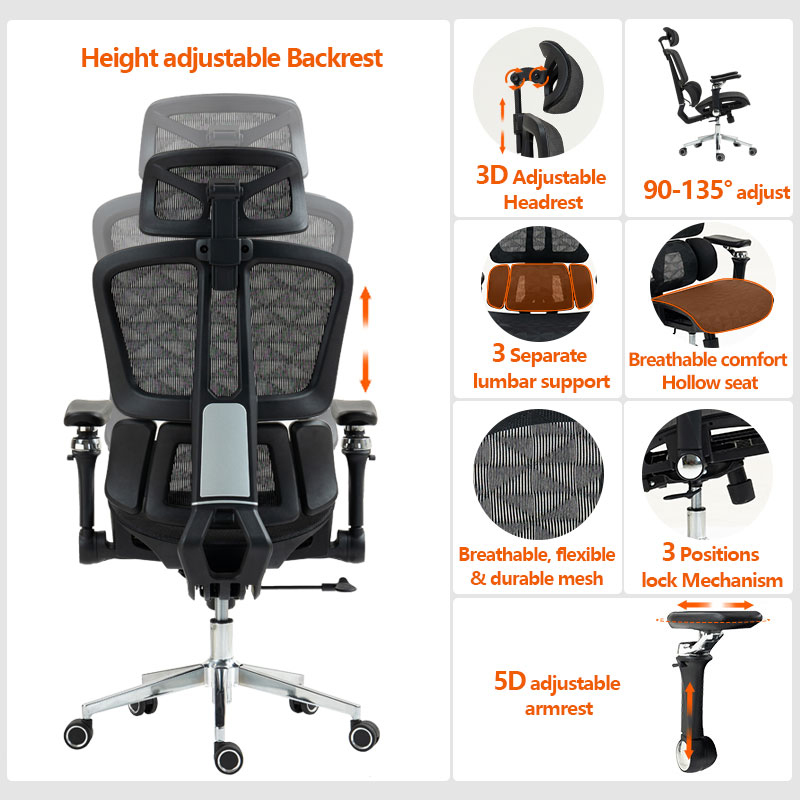 • 6D Adjustable Armrests: Adjustable in height, depth, width, and rotation for maximum wrist and arm comfort.
