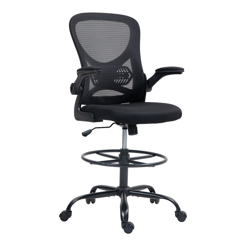 - The base of this chair is made of metal with a black powder-coated finish. In addition to its high durability, it offers sturdiness and great stability, safely supporting the user’s weight. The matte black finish provides a modern and professional look that fits seamlessly into any workspace.