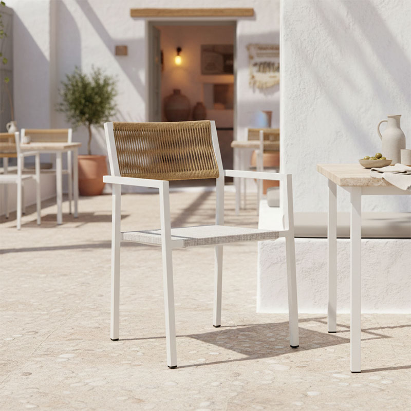 Aluminum armchair Savor Argos The Classic stackable white frame-textilene natural rattan 55x58x83cm