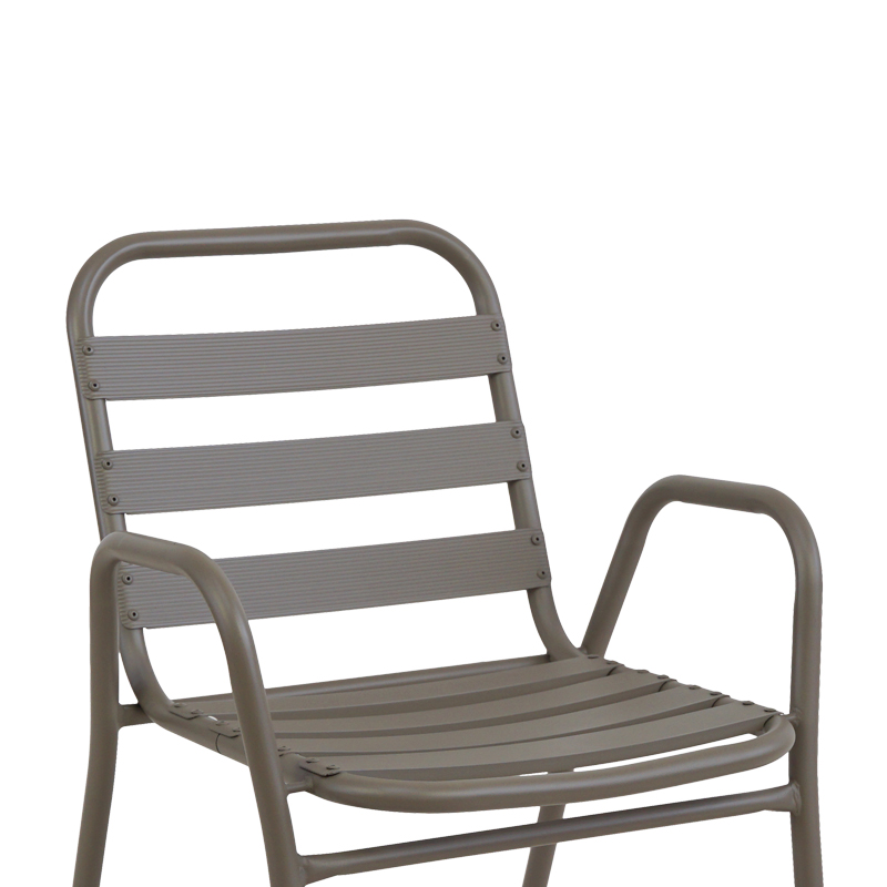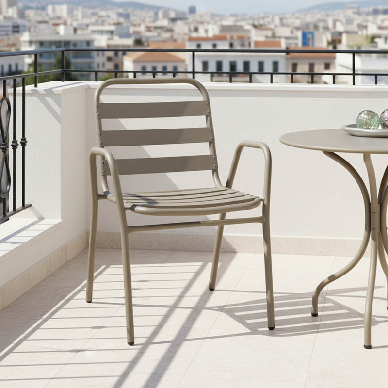 • Seat and backrest made of aluminum slats that add a lightweight and modern feel to the design.