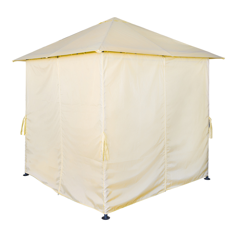 The durable steel frame and beige canopy provide reliable sun protection, while the practical curtains add extra shade and privacy. It’s the perfect addition to enjoy your summer evenings or sunny days, whether alone or with company.