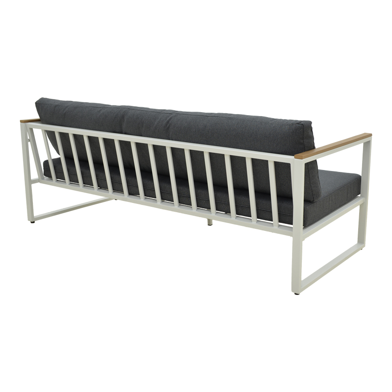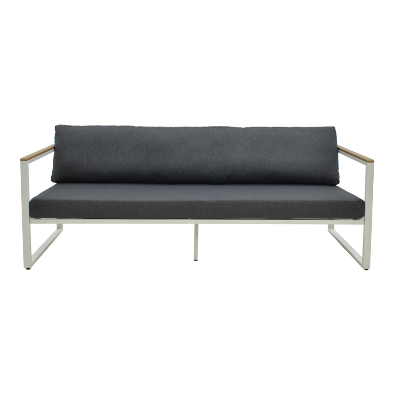 Upgrade your indoor or outdoor space with the Aurelio 3-Seater Sofa. Featuring a sturdy steel frame and sleek, modern lines, it combines style, comfort, and long-lasting durability. The armrests with plywood accents add a natural touch, while the plush cushions ensure a premium seating experience.