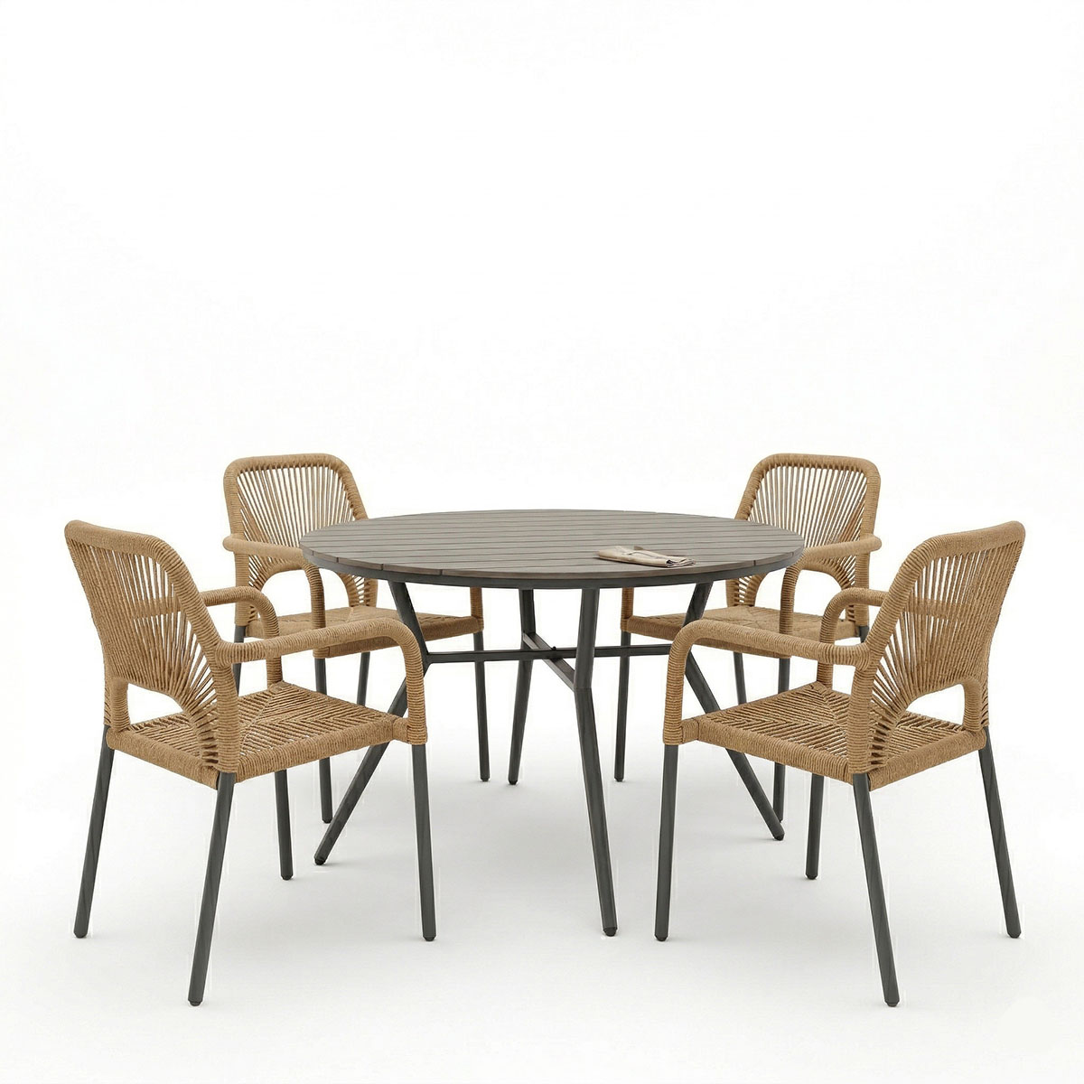 Dining table Appa-Norture set of 5 pieces Argos The Classic anthracite aluminum and rattan in natural shade D120x74cm