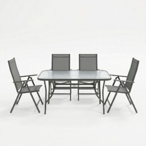 Dining table Ensure Candor Argos The Classic set of 5 pieces anthracite metal with glass 120x70x70cm